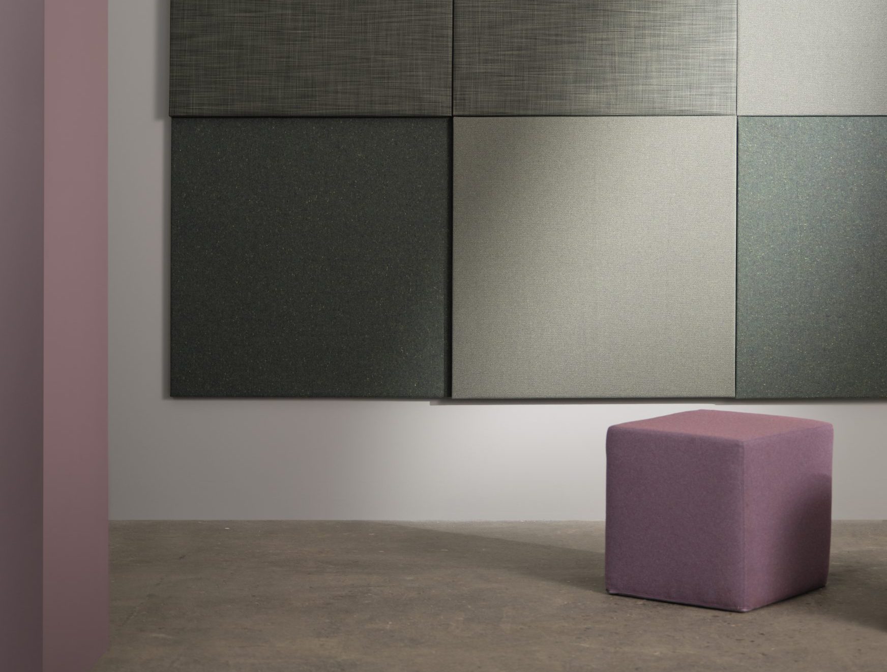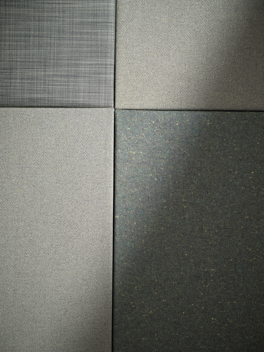Our acoustic collection offers fabrics made mainly from recycled polyester or wool, or recyclable mono qualities made from 100% wool or polyester – all sourced and produced in Europe. Our recycled fabrics contain pre-consumer or post-consumer raw materials. Most fabrics in our acoustic collection is certified according to OEKO-TEX Standard 100, class II, and all our recycled fabrics adhere to the GRS (Global Recycled Standard).