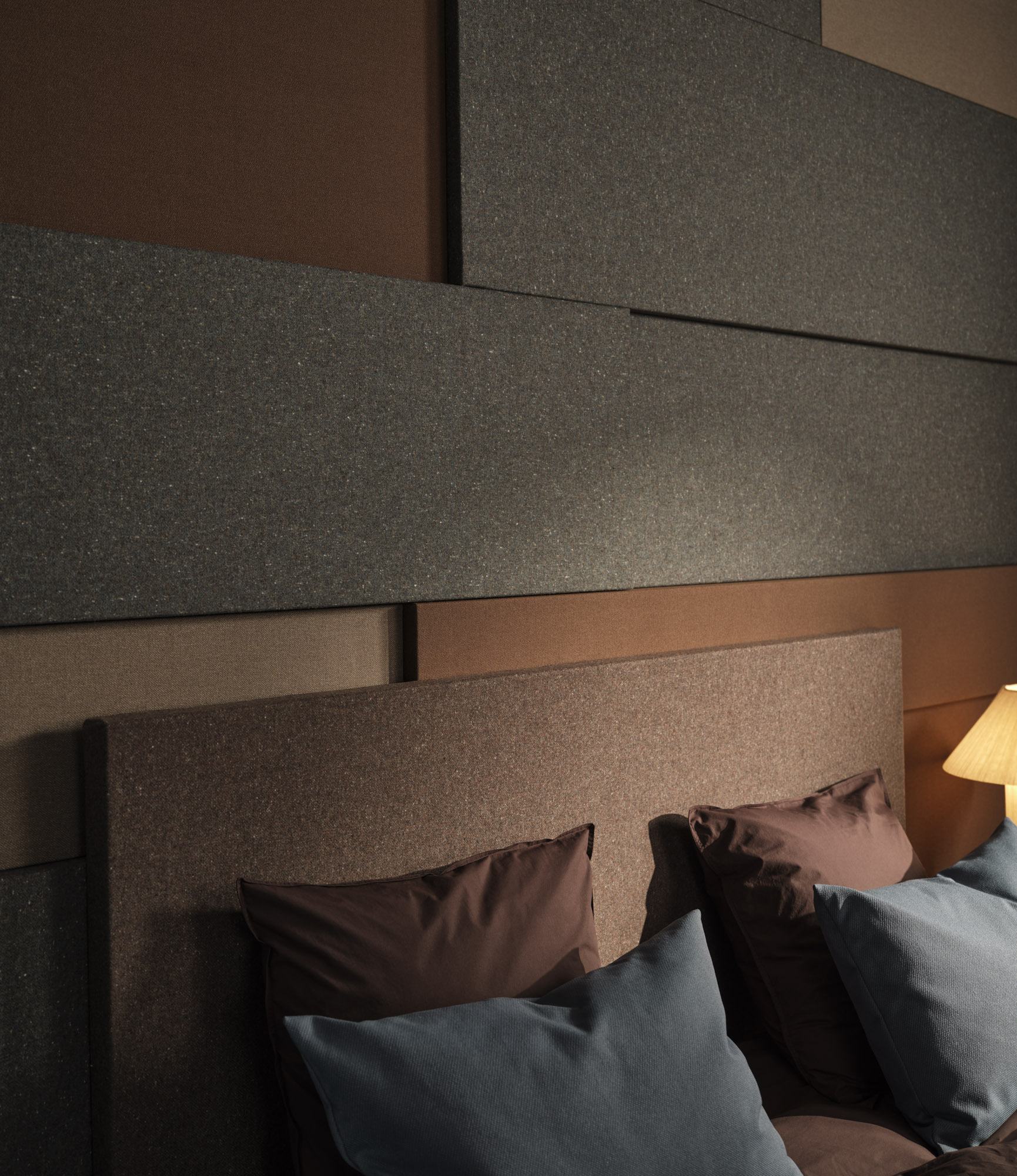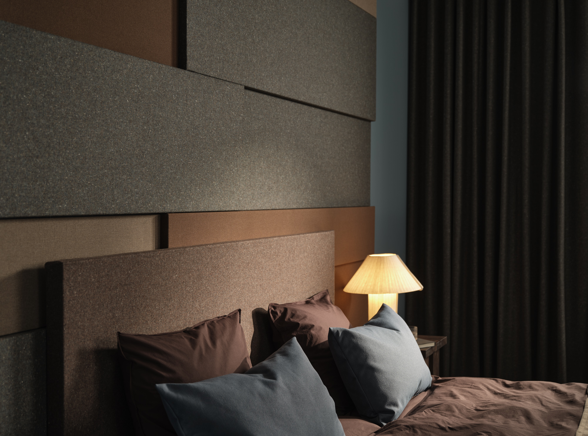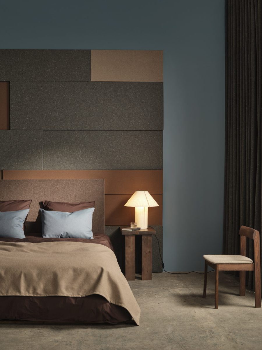 Our acoustic collection offers fabrics made mainly from recycled polyester or wool, or recyclable mono qualities made from 100% wool or polyester – all sourced and produced in Europe. Our recycled fabrics contain pre-consumer or post-consumer raw materials. Most fabrics in our acoustic collection is certified according to OEKO-TEX Standard 100, class II, and all our recycled fabrics adhere to the GRS (Global Recycled Standard).