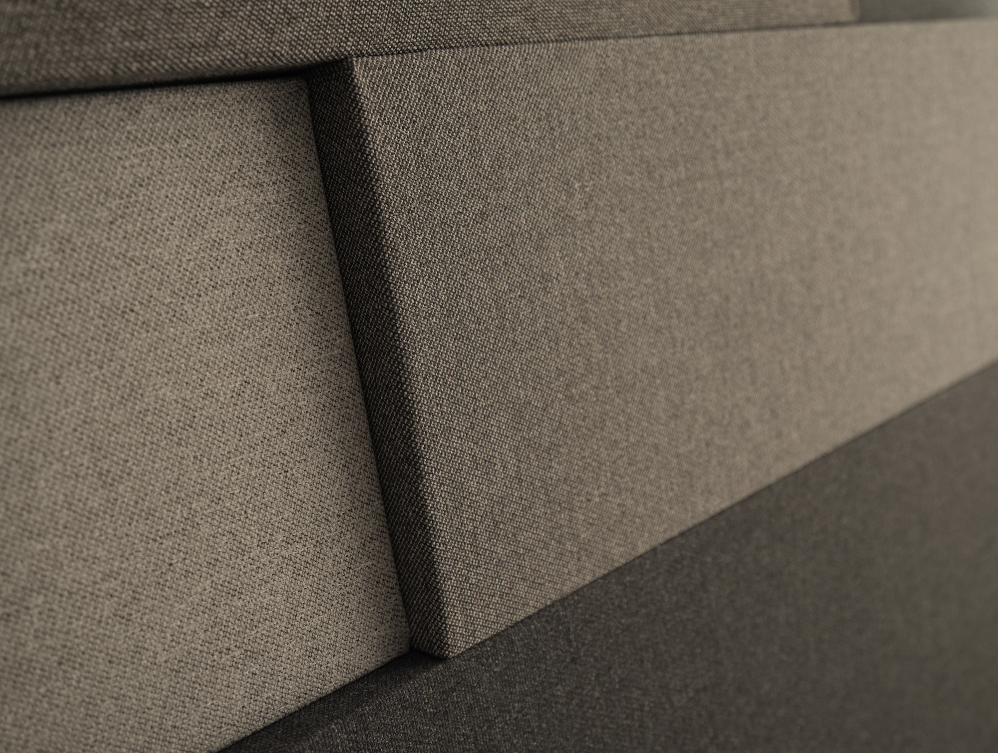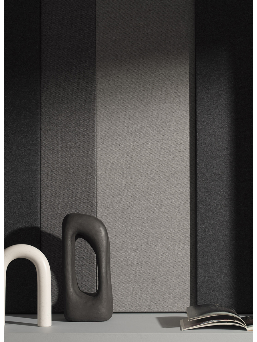Composed of smooth WONDER fabric, subtle shifts in depth introduce a quiet dimensionality. The result is a refined, architectural layout that balances precision with softness, bringing focus, structure, and a composed atmosphere to your space.