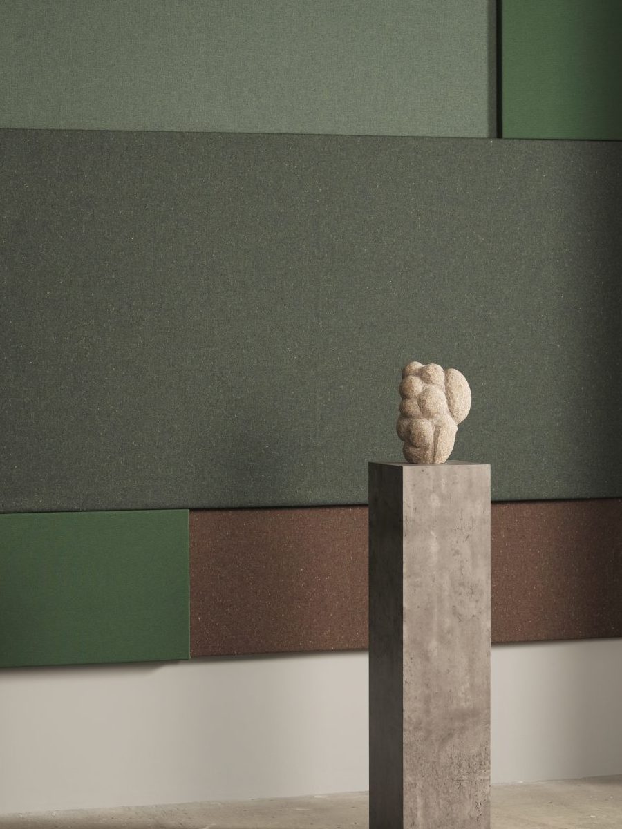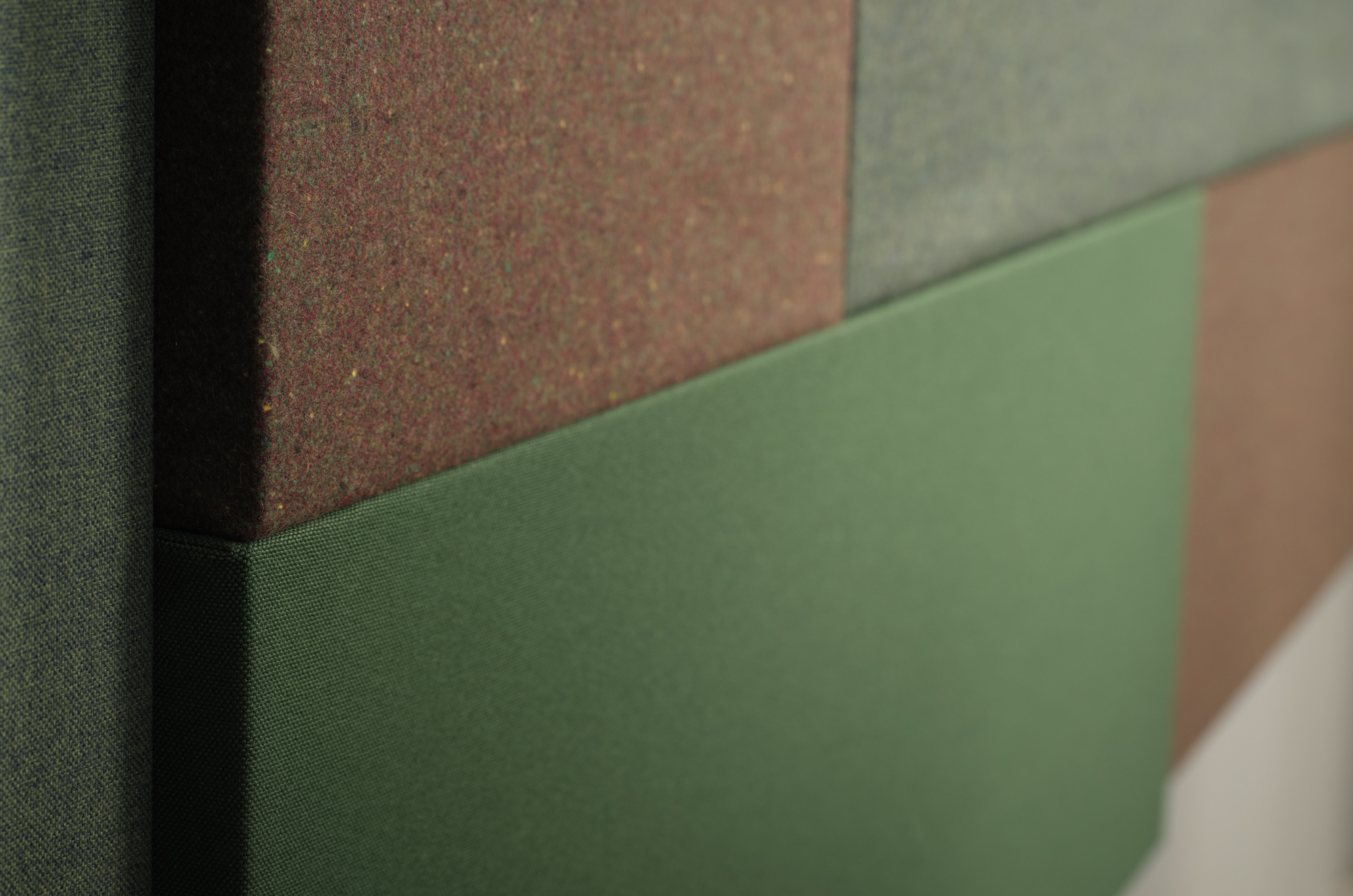 Our acoustic collection offers fabrics made mainly from recycled polyester or wool, or recyclable mono qualities made from 100% wool or polyester – all sourced and produced in Europe. Our recycled fabrics contain pre-consumer or post-consumer raw materials. Most fabrics in our acoustic collection is certified according to OEKO-TEX Standard 100, class II, and all our recycled fabrics adhere to the GRS (Global Recycled Standard).