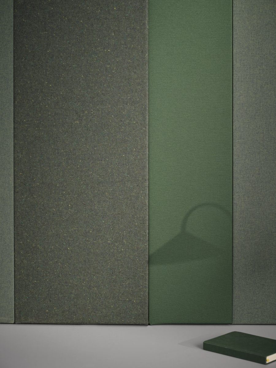 Back to all EDITsEffortless acoustics. This fabric wall panel combines refined sound absorption with a rich visual presence. Deep green tones, reminiscent of dense pine forests, bring a sense of calm and immersion. Like stepping quietly into the woods.